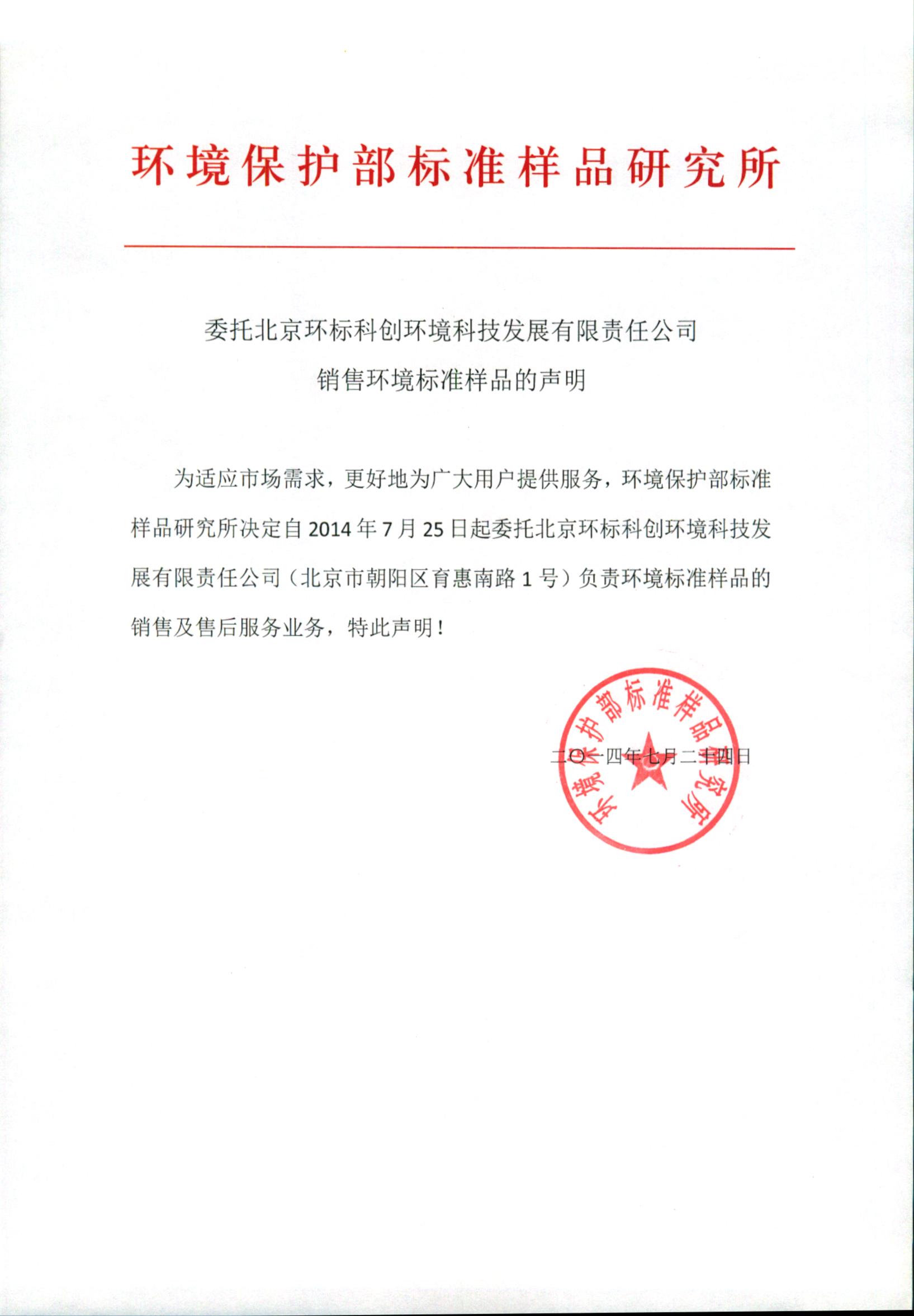 為生態環境部環境發展中心環境標準樣品研究所(簡稱“標樣所” IERM)環境標準樣品獨家代理機構。