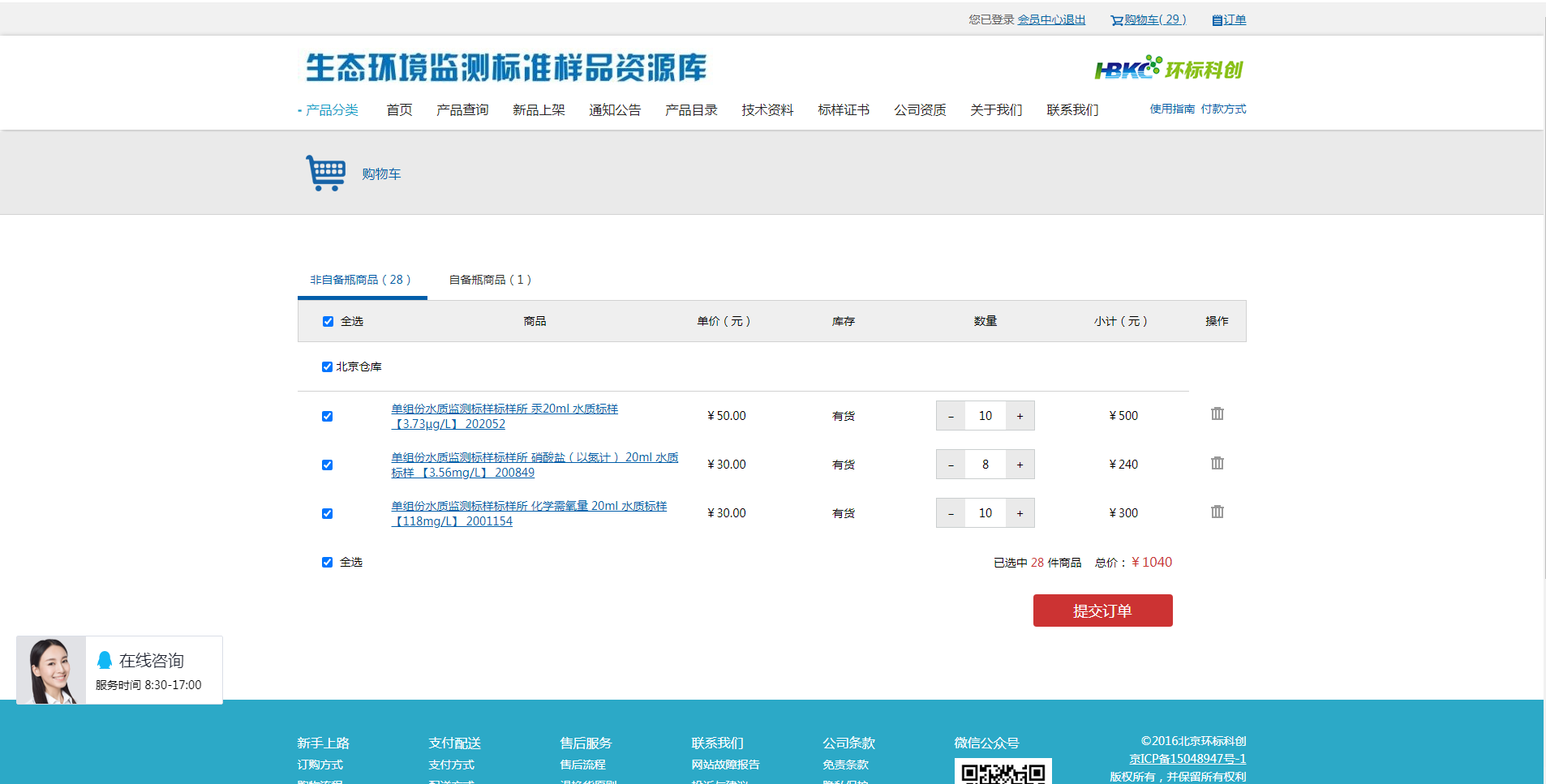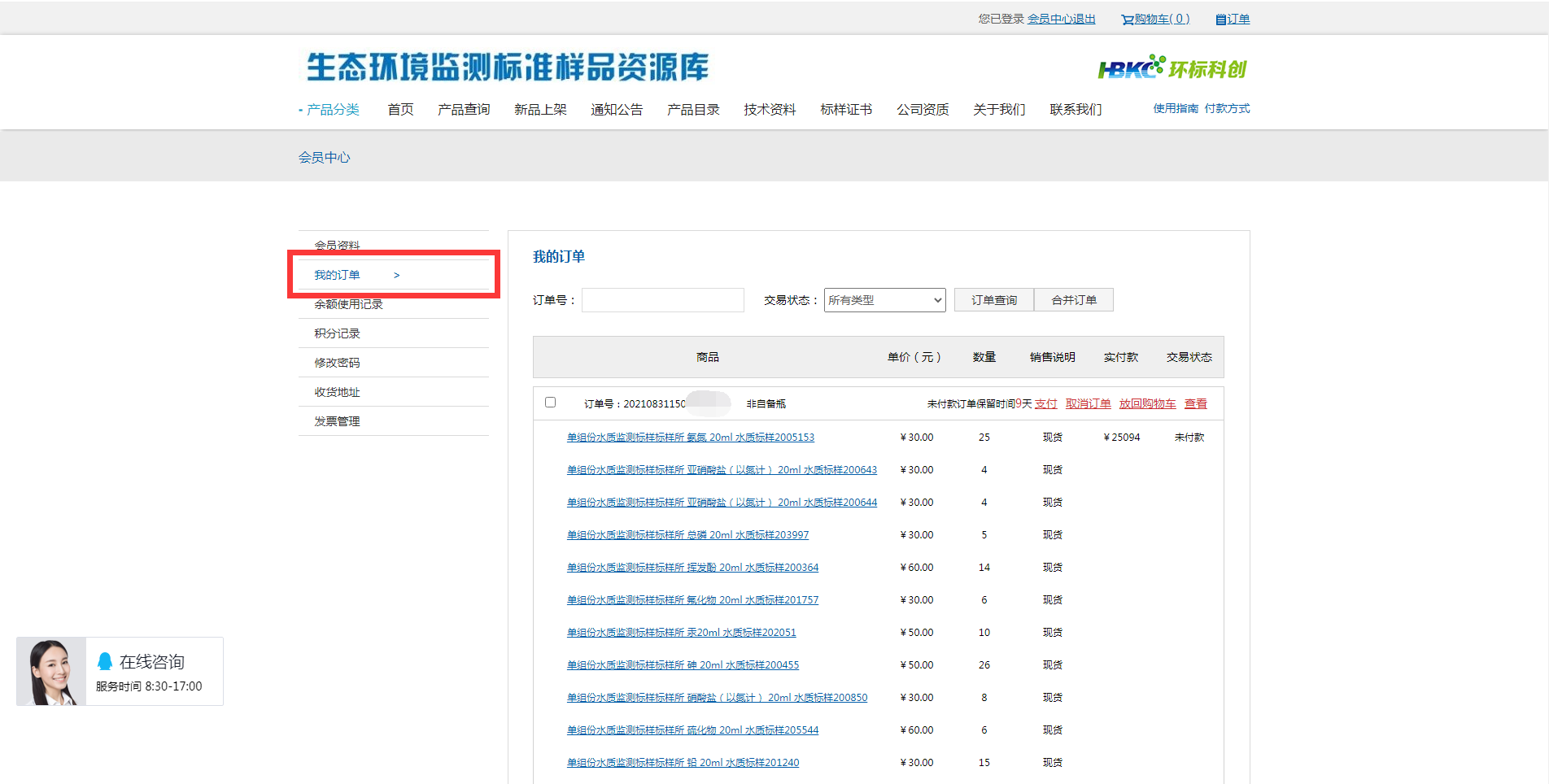 提供環(huán)境標(biāo)準(zhǔn)樣品及相關(guān)產(chǎn)品的信息查詢、技術(shù)資料下載、在線客服交流、在線詢價(jià)處理及訂單處理等各類個(gè)性化服務(wù)。